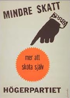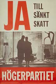 1935 kunde man sedan läsa på högerns affisher: Lägre skatter, välj med de borgerliga.