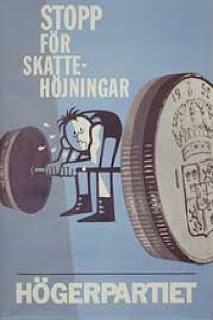 1935 kunde man sedan läsa på högerns affisher: Lägre skatter, välj med de borgerliga.